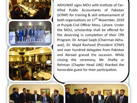 AKHUWAT signs MOU with CPA-Pakistan AKHUWAT signs MOU with Institute of Certified Public Accountants of Pakistan (ICPAP) for training & skill enhancement of both organizations on 17th November, 2019 at Punjab...