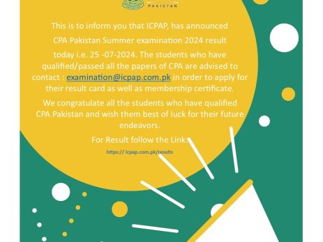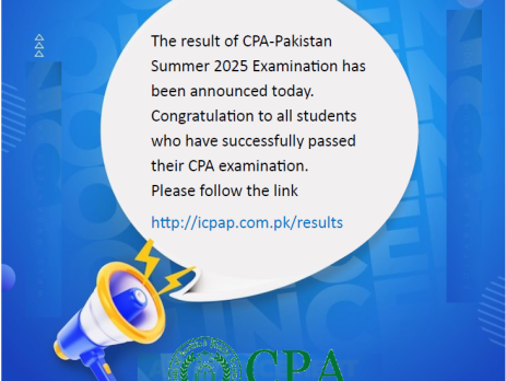 The result of CPA-Pakistan Winter 2025 examination has been announced today. Congratulations to all students who have successfully passed their CPA-Pakistan examination. Please follow the link: https://icpap.com.pk/results/